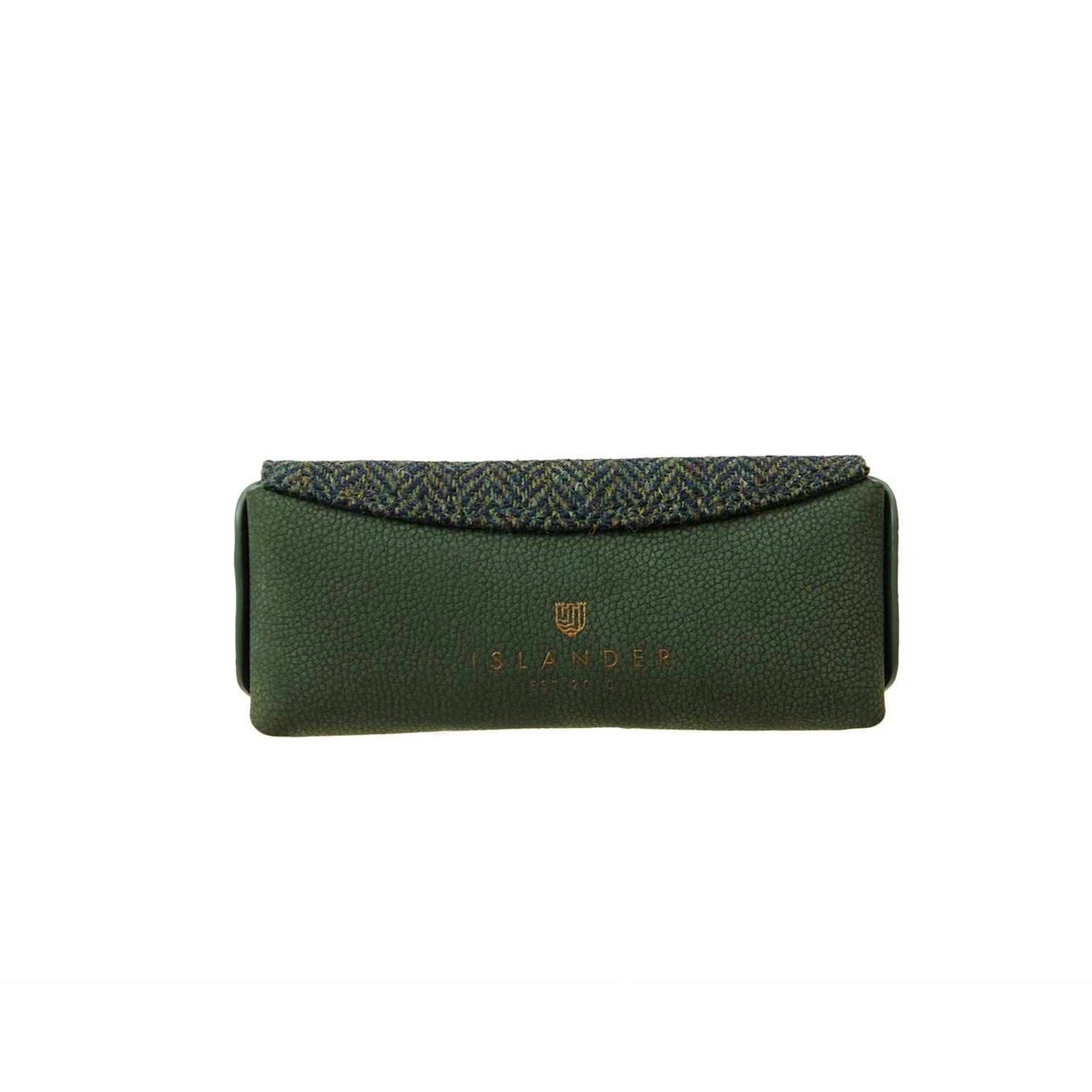 Harris Tweed Brillenetui aus Leder, Grün Fishgrat