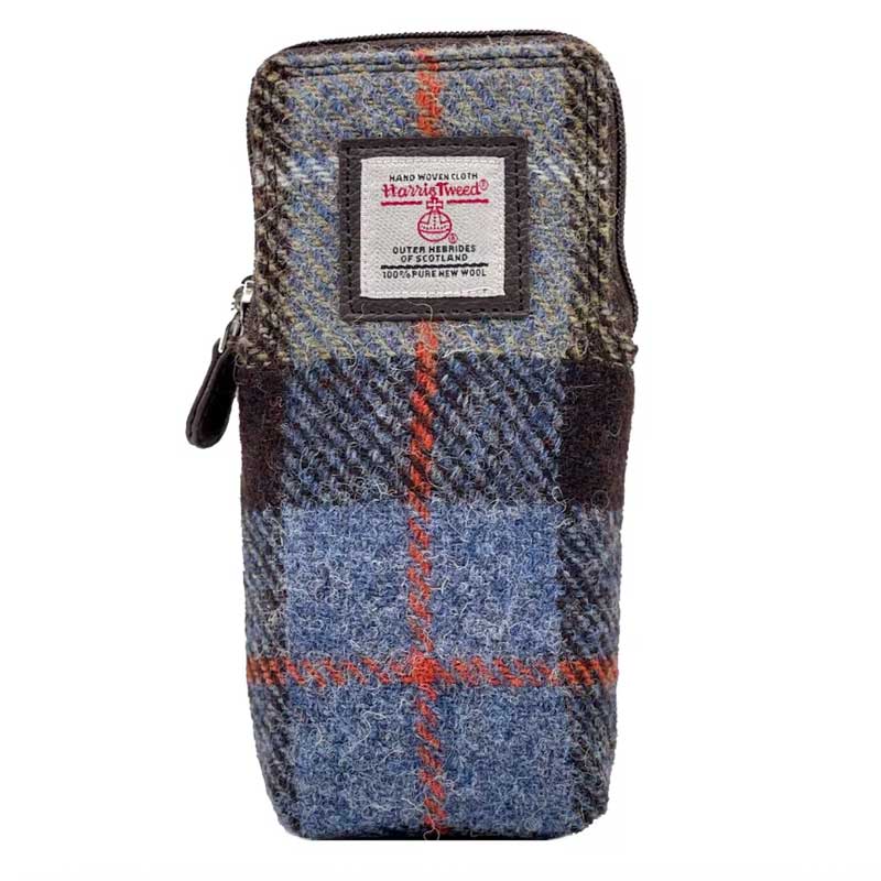 Doppelte Brillenhülle aus Harris Tweed in Blau/Braun kariert