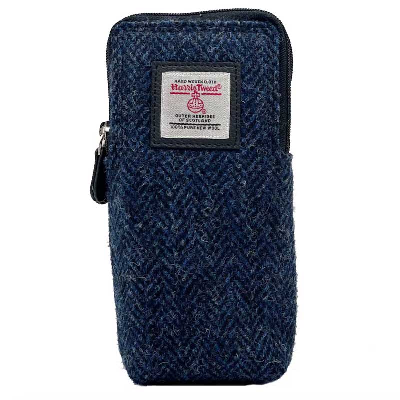 Harris Tweed Brillenetui aus Leder, marineblau kariert