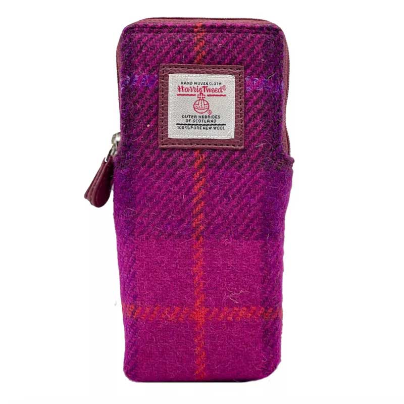 Doppelte Brillenhülle aus Harris Tweed in Lila-Karo