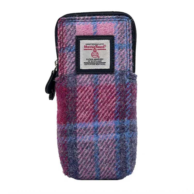 Doppelter Brillenetui aus Harris Tweed in Blau/Rosa Karo
