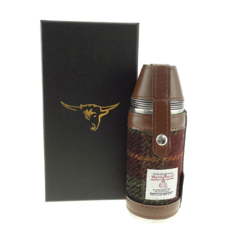 Verleihen Sie Ihren Outdoor-Abenteuern mit Harris Tweed Jagdflachmännern einen Hauch von Tradition. Diese luxuriösen Flachmänner sind mit echtem Harris Tweed – handgewebt auf den schottischen Äußeren Hebriden – überzogen und stilvoll mit Lederdetails versehen.