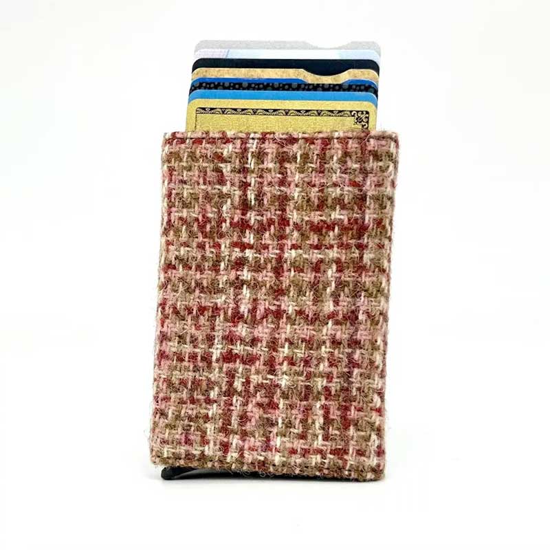 Pop-Up-Kartenetui aus Harris Tweed in Pastellrosa
