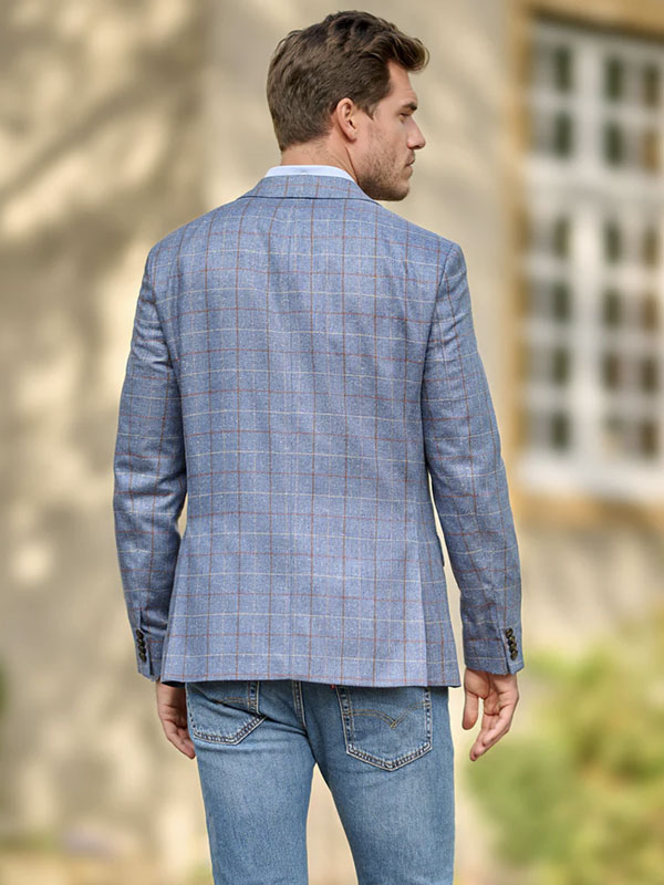 Edles Seiden Sakko „London“ In Blau Mit Dezentem Überkaro
