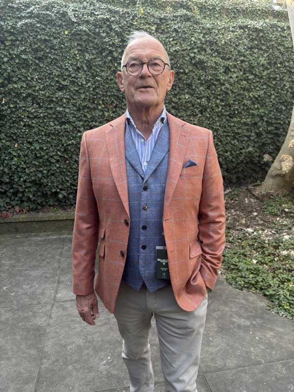 Edles Seiden Sakko „London“ In Blau Mit Dezentem Überkaro