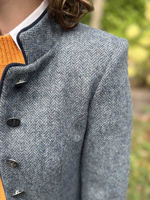 Tweed Damen Blazer, Lang, Steel Blue Fishgrat