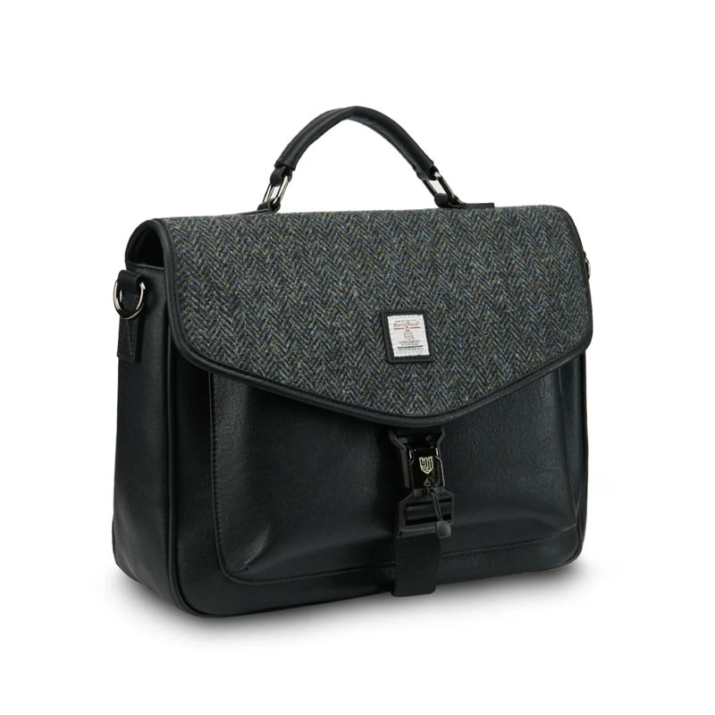 Harris Tweed Laptoptasche, Schwarz-Grau Fischgrätmuster