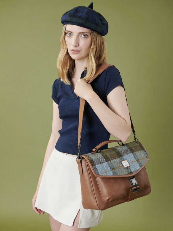 Harris Tweed Laptoptasche, Kastanienblaues Tartan