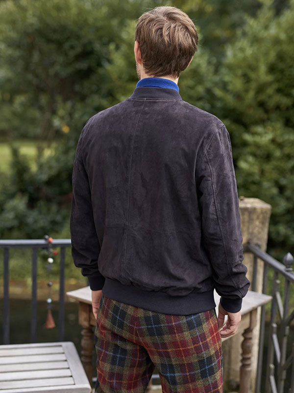 Herren Lederblouson ”Bomber” Aus Ziegenvelours In Navy