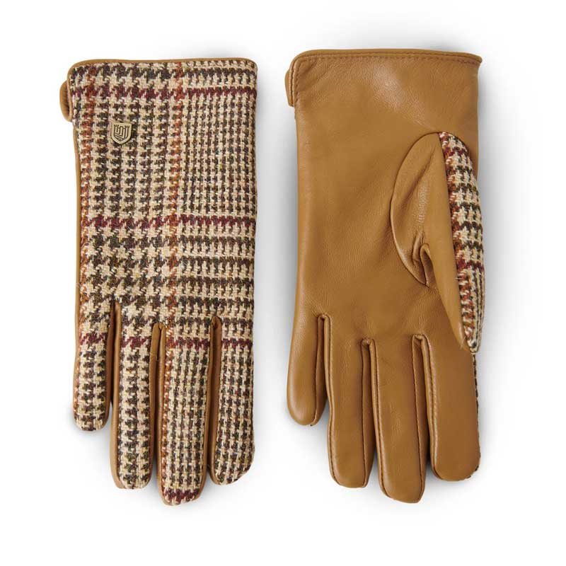 Damen Harris Tweed Handschuhe Beige Hahnentrittmuster