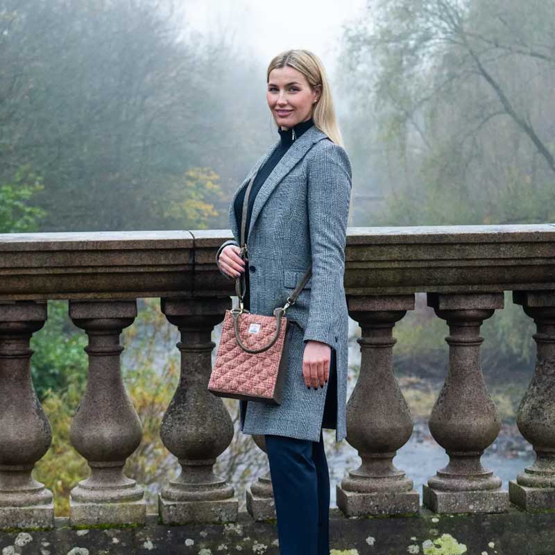 Die Ausführung des veganen Leders variiert je nach gewählter Harris-Tweed-Farbe: