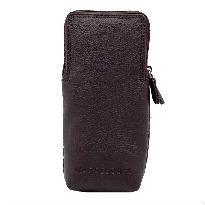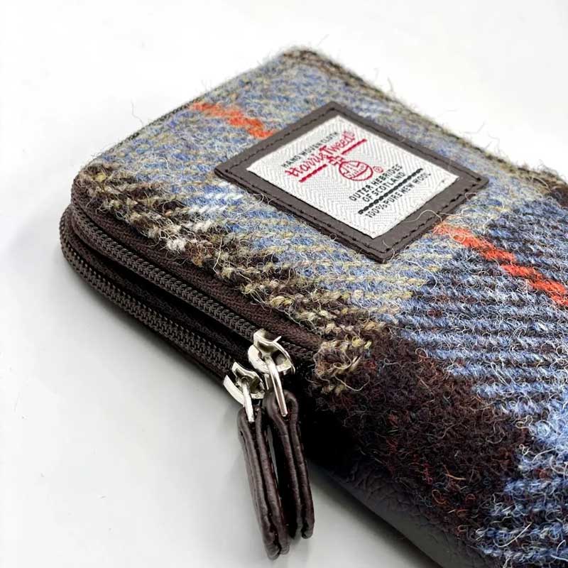 Doppelte Brillenhülle aus Harris Tweed in Blau/Braun kariert.