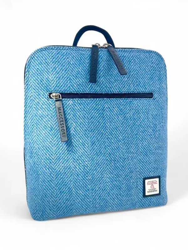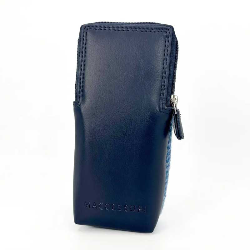 Doppelte Brillenhülle aus Harris Tweed in Himmelblau.