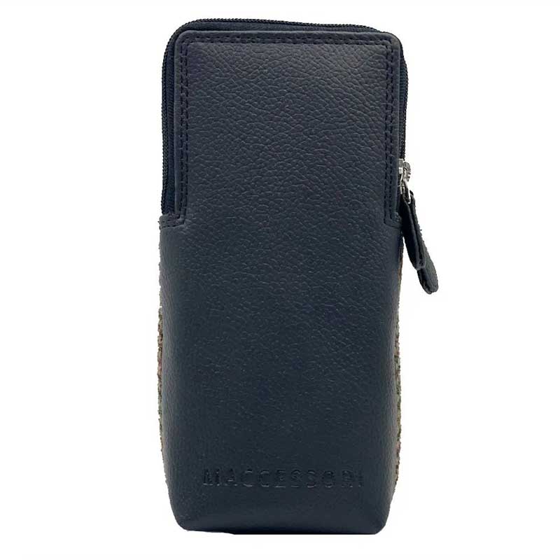 Das Brillenetui aus Harris Tweed verfügt über zwei separate Reißverschlussfächer im oberen Bereich, je eines für jede Brille. Der Reißverschluss verläuft an beiden Seiten und ermöglicht so einen bequemen Zugriff. Das Doppel-Brillenetui ist vorne mit Harris Tweed bezogen und vollständig mit weichem Baumwollstoff gefüttert.