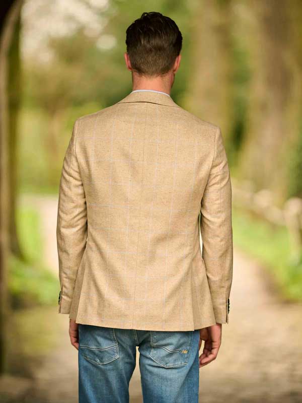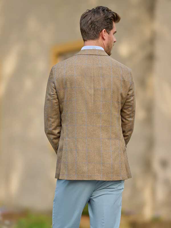 Edles Seiden Sakko „London“ In Blau Mit Dezentem Überkaro.