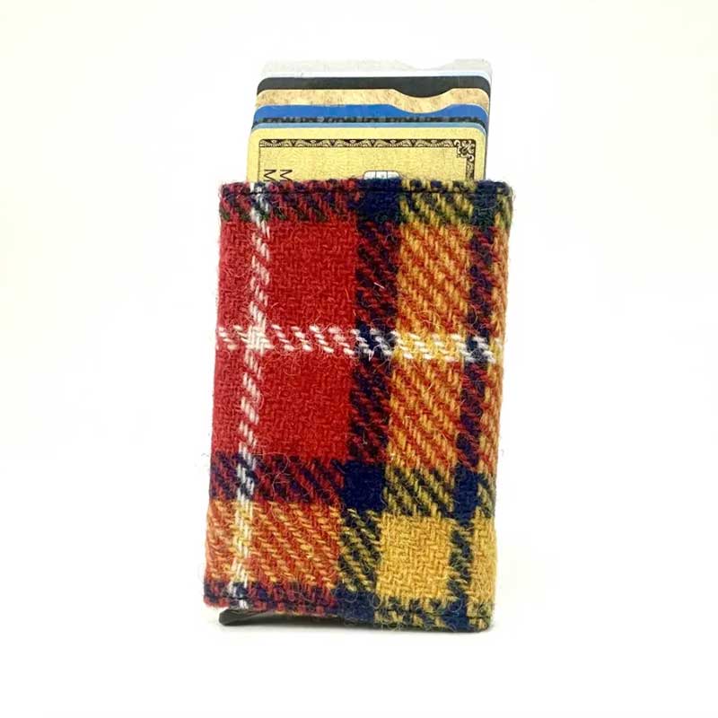 Die Harris Tweed Geldbörse besticht durch ihr minimalistisches Design und bietet Platz für acht Karten und zwei Geldscheine.