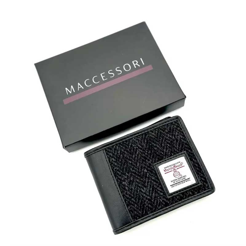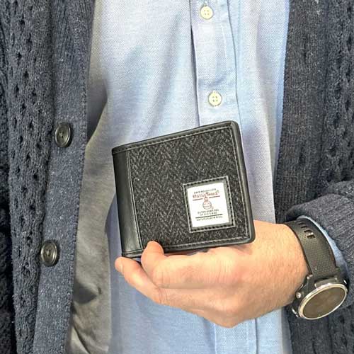 Harris Tweed Bifold Münzgeldbörse in Anthrazit.
