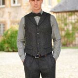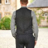 Klassische Herrenweste ”Wales” mit Revers aus original Harris Tweed. Harris Tweed ist ein Oberstoff aus 100% Schurwolle, handgewebt auf den äußeren Hebriden Schottlands. Kaum ein zweiter Oberstoff steht so sehr für Tradition, Qualität und Tragekomfort. Ein echter Allrounder im Fischgrat Dessin – klassisch zeitlos und doch modern lässt sie sich wunderbar kombinieren zu Sakkos, lässigen Jeans, Chinos oder klassischen Cordhosen. Mit Reverskragen, zwei Pattentaschen, Brustleistentasche, Rückteil aus Oberstoff und verstellbarem Riegel wird die Weste mit fünf Knöpfen in Hornoptik geschlossen. Das eingenähte Echtheits-Zertifikat der HARRIS TWEED Authority bürgt für diese einzigartige Qualität und Echtheit des verarbeiteten Oberstoffs.