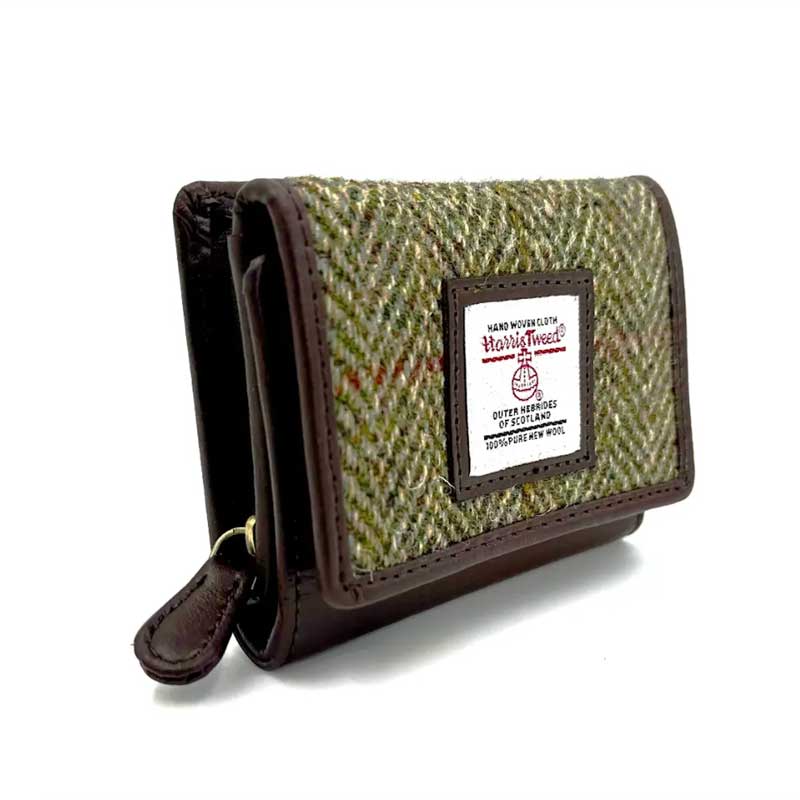 Harris Tweed zweifach faltbare Geldbörse in Country Green.