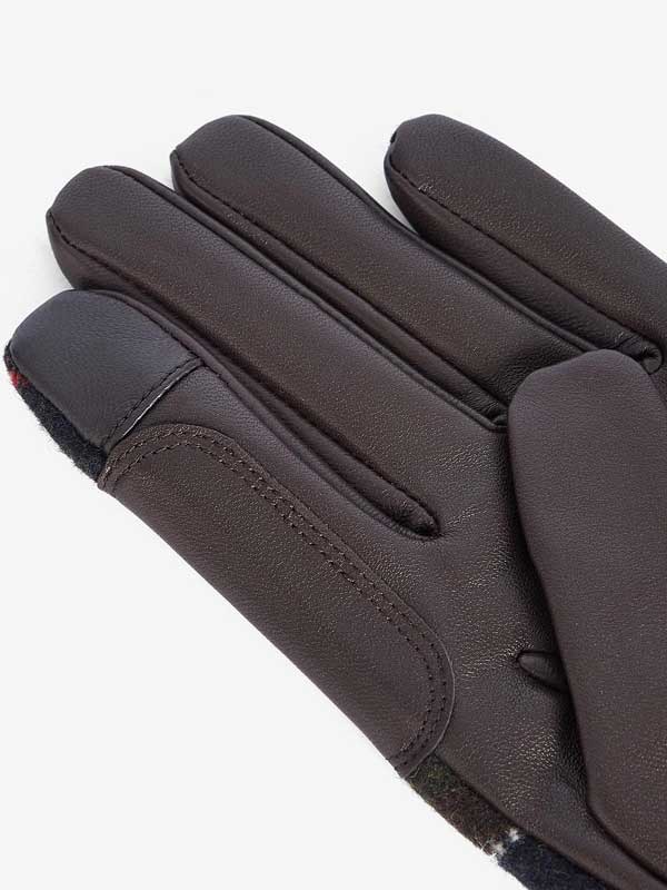 Ladies Brown Leather & Tweed Gloves in Brown Dogtooth