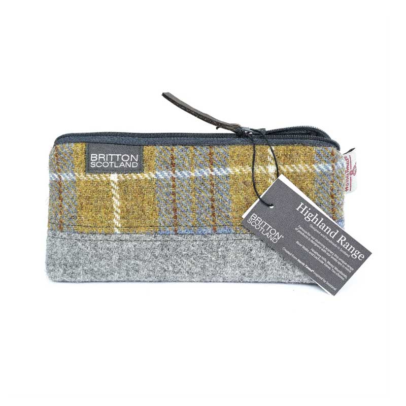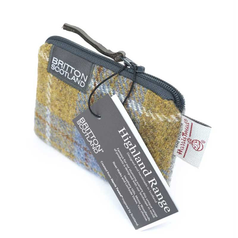 Harris Tweed Purse Muted Green and Rose Pink Tartan